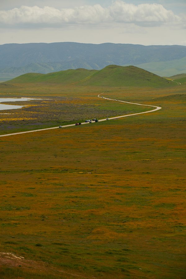 The official Bureau of Land Management website calls the Carrizo Plain National Monument "one of the best kept secrets in California." It used to be that even during a great bloom year you'd only pass a few other cars. But in recent years multiple major news outlets have covered the area's tendency to superbloom. While it is slightly buffered by its out-of-the-wayness, the secret is out.