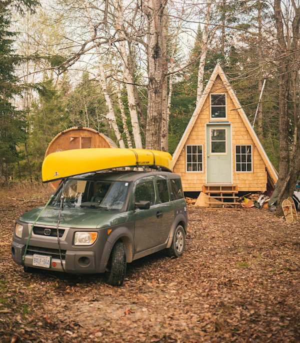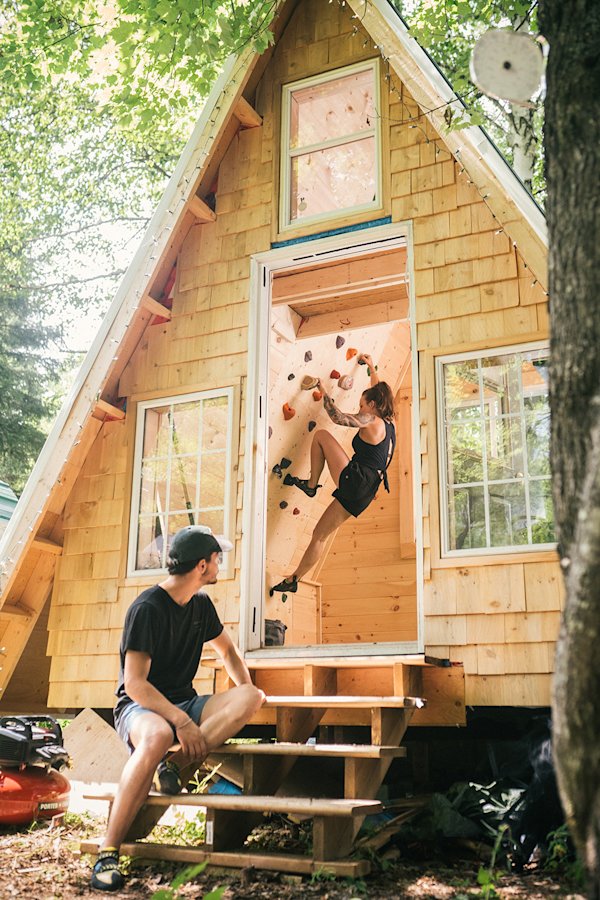 A while back a friend DM’ed me the Instagram profile of Andrew Szeto, an Ottawa, Ontario-based skater, outdoorsman, and wood worker. His videos of making knives, canoe paddles, and furniture out of recycled skateboards caught my eye. Then he started building an A-Frame cabin, and I felt like I found my soul mate.