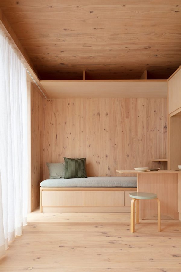 Previously, the studios teamed up to work on Slate Cabin, a hiking cabin in Snowdonia National Park in Wales. This time, FABPREFAB reached out to Trias to create a similar micro-dwelling that would fit on standard trucks bed for easier transport.