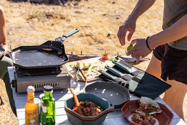 If your idea of camp cuisine consists of more than instant ramen, say yes, chef! to stacking sets of pots, bowls, cutting boards, and knives