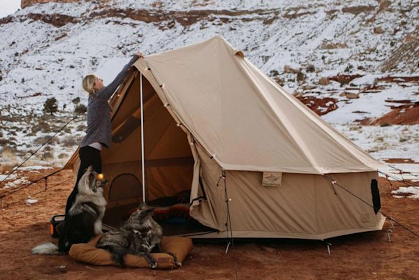 Round glamping tents are either called bell tents or glamping domes.